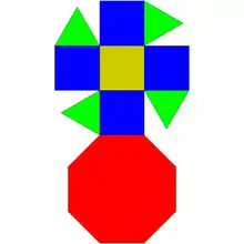 4 треугольников,<1 + 4 квадратов 1 восьмиугольник |