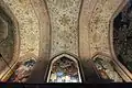 Залы дворца украшены фресками с изображением событий из истории династии Сефевидов, в которых прослеживается европейское и индийское влияние. Небольшие фрески любовно-эротического содержания в эпоху Каджаров были закрашены известью, что позволило им дойти до наших дней в отличном состоянии.