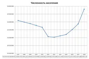 По данным Чешского статистического управления, в 2009 году численность населения Чехии достигла 10,5 млн человек[49]. По сравнению с показателем за 2008 год, число иммигрантов сократилось вдвое, составив 40 тыс. человек, а число эмигрантов увеличилось в два раза, достигнув отметки 11,6 тыс. человек.
