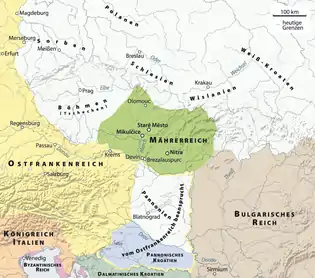 В 846 году князь Великоморавской державы Моймир I распространил свою власть на территорию Чехии. В конце IX века чешские земли были объединены Пржемысловичами. В «Чешской хронике» Козьмы Пражского можно прочесть: «В лето от Рождества Христова 894. Был крещён Борживой, первый князь святой христианской веры». Вопрос достоверности этого факта вызывает споры[11].