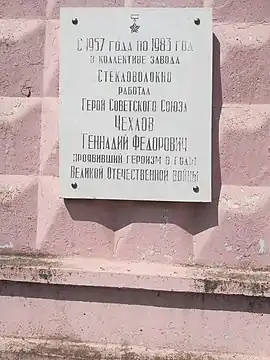 В городе Гусь-Хрустальный на здании заводоуправления завода «Стекловолокно», в котором работал Герой, установлена мемориальная доска.