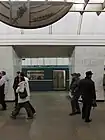 В середине зала находится лестница, ведущая в переход на станцию