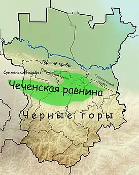 На Чеченской равнине расположены крупные города Чечни и Ингушетии — Грозный, Сунжа, Гудермес, Урус-Мартан, Шали, Карабулак, Аргун и другие.