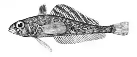Общая окраска тела у живых рыб голубовато-серая, со слегка желтоватыми жаберной крышкой и областью оснований грудных плавников. У фиксированных в формалине и спирте рыб на боках туловища имеются 6 поперечных тёмных полос, сужающихся в нижней части. Первый спинной плавник черноватый, второй спинной плавник с узкими косыми тёмными полосами; анальный плавник светлый, темнеющий в задней части. Остальные плавники светлые. У некоторых рыб все плавники могут быть светлыми, без тёмной пигментации. Ротовая и жаберная полости чёрные[7].
