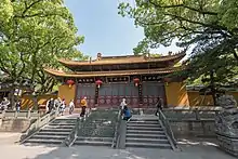 - Храм Хойцзи был основан монахом в виде небольшой пагоды на вершине высочайшего холма острова (291 м) в период династии Мин. В 1793 году были построены основные залы комплекса. 3 мая 1949 года храм посетил Чан Кайши, во время Культурной революции убранство храма было разграблено, а в помещениях размещались армейские казармы. В 1988 году был построен зал Гуаньинь, а в 1992 году был создан большой пруд. Сегодня храм Хойцзи является третьим по величине храмовым комплексом Путошаня, в его состав входят десятки павильонов и залов, а также многоярусная пагода на вершине холма.
