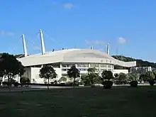 Крупнейшим спортивным сооружением округа является спортивный комплекс Чжэцзянского океанского университета в районе Динхай. В его состав входят крытая легкоатлетическая арена, плавательный бассейн и стадион. Крупные гольф-клубы расположены на островах Чанши и Чжоушань.