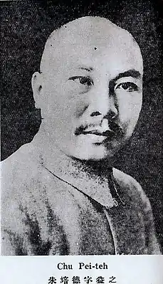 Чжу Пэйдэ́ (кит. упр. 朱培德, пиньинь Zhū Péidé, 29 октября 1888 — 17 февраля 1937) — китайский военный и политический деятель. В 1926—27 годах участвовал в Северном походе, в котором командовал 3-й армией Национально-революционной армии, в 1927—29 годах был губернатором Цзянси. После этого он занимал должности главы генерального штаба, начальника общевойсковой подготовки и начальника управления военной комиссии.
