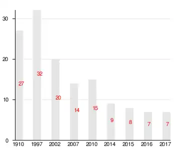| 1910 | 1997 | 2007[14] | 2010[15] | 2014[16] | 2015[17] | 2016[18] |