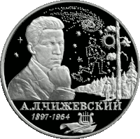 - В 1997 году ЦентроБанк РФ выпустил серебряную монету номиналом 2 рубля, посвящённую 100-летию со дня рождения Чижевского[25].