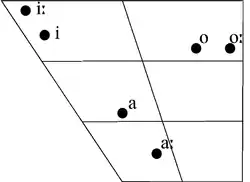 | Гласные верхнего подъёма | i [ɪ] | ii [iː] | i̱ [ĩː] | ||||||