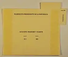 Чилийский национальный плебисцит 1988 года (исп. El plebiscito nacional de Chile de 1988) ― всенародное голосование, состоявшееся 5 октября 1988 года, по вопросу о том, может ли президент Республики Чили Аугусто Пиночет продлить своё правление ещё на восемь лет. Победу на голосовании одержали противники продления президентских полномочий: своё «нет» высказали почти 56% участников плебисцита. По итогам референдума Пиночет был вынужден оставить пост президента в марте 1990 года, после более чем шестнадцати лет правления страной.