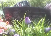 Памятник на могиле на сельском кладбище.