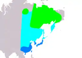 ![]() Только гнездится Маршруты миграции Районы миграции |