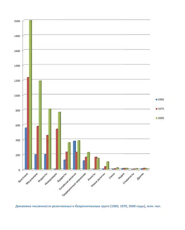 | 1 | Христиане | 558 132 000 | 34,5 % | 1 234 969 000 | 33,4 % | 1 999 564 000 | 33,0 % |
