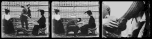 В обувной магазин приходят две дамы. Юноша предлагает для одной из них журнал, а для другой подбирает обувь. Во время примерки одной пары обуви женщина высоко подтягивает юбку. Юноша целует даму, примеряющую обувь. Поцелуй не понравился второй даме, и она бьёт юношу зонтиком.