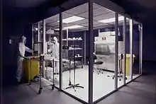 Чистое помещение — помещение, где в воздухе поддерживаются в определённом заданном диапазоне размер и число на кубический метр таких частиц, как пыль, микроорганизмы, аэрозольные частицы и химические пары. При необходимости в них также могут контролироваться и другие параметры, например влажность, давление и температура. Такие помещения как правило строятся и используются так, чтобы свести к минимуму поступление, генерацию и накопление таких частиц внутри помещения.