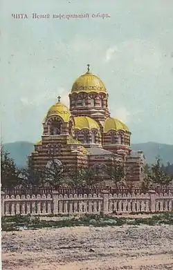 ![]() Сверху вниз, слева направо: Дворец братьев Шумовых — здание Управления ФСБ, Церковь декабристов, корпус Историко-филологического факультета ЗабГУ, Здание аэровокзала, Казанский кафедральный собор | |||||