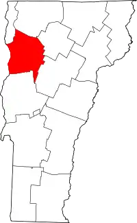 Округ граничит с 5 округами Вермонта, 2 округами штата Нью-Йорк и имеет выход к берегам озера Шамплейн.