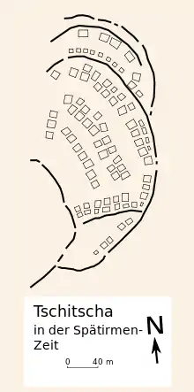 Археологическим раскопкам предшествовало геофизическое исследование местности. Геофизические съёмки выявили, что территория поселения окружена мощными оборонительными укреплениями — валами и рвами. Поселение было разделено на отдельные сектора, внутри которых находятся разнообразные дома и постройки, при этом каждый сектор, как и весь город, имел чёткую плановую застройку. Судя по проведённым раскопкам и найденным фрагментам домашней утвари, в каждом секторе жили люди почти европейской внешности, но различных культур. Это даёт основания предполагать, что в Чичабурге пересекались пути различных народов.