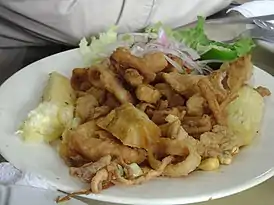 Чичаррон (исп. chicharrón) — блюдо, приготовляемое из жареной свиной шкуры. Иногда делают из курятины, баранины или говядины.