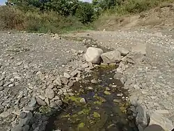 …пересекаем глубокое русло ручья, который ничего не представляет из себя в обычную погоду, но превращается в бурный поток после грозы или затяжных дождей[9].