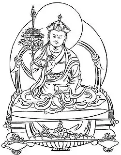 Когда Чокгьюр Лингпа был мальчиком, он пас скот. Однажды он встретил ламу, одетого как индийский нищенствующий монах (атсара). Атсара спросил у него, как его зовут. Тот ответил: «Норбу Тендзин». Затем атсара поинтересовался, как называется место, где они находятся. Чокгьюр Лингпа ответил: «Маника». Атсара задал третий вопрос: «Как называется эта долина?». Когда Чокгьюр Лингпа сообщил, что долина называется «Арья Нанг», то нищий сказал: «Это очень хороший знак. Ты получишь широкую известность в этом мире». Тибетцы верят, что под видом нищего тогда явился Гуру Ринпоче (Падмасамбхава)[3].