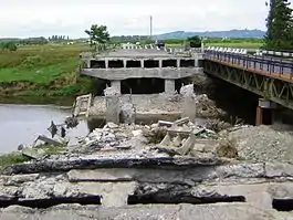Мост через р. Чолоки (в центре — остатки моста, взорванного в 2004 году, правее — новый мост) | |