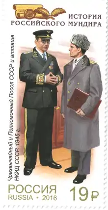 - Постановление Правительства Российской Федерации № 799 от 17.11.2001 "О форменной одежде работников МИД РФ, дипломатических представительств и консульских учреждений РФ, представительств МИД РФ на территории Российской Федерации" (недоступная ссылка). Дата обращения: 8 сентября 2016. Архивировано 17 сентября 2016 года.