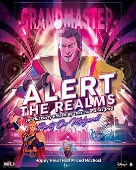 - What If...? [whatifofficial]. Alert the Realms. You don't want to miss the party in the seventh episode of Marvel Studios' #WhatIf, now streaming on @DisneyPlus. Art by @OrlandoArocena.. [твит]. Твиттер (24 сентября 2021). Дата обращения: 30 сентября 2021. Архивировано 30 сентября 2021 года.