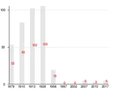 Число жителей по семейным спискам 1879 г.: 23 м. п., 30 ж. п.; по приходским сведениям 1879 г.: 22 м. п., 27 ж. п.[2]