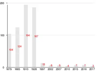 Число жителей по семейным спискам 1879 г.: 47 м. п., 57 ж. п.; по приходским сведениям 1879 г.: 54 м. п., 69 ж. п.[3]