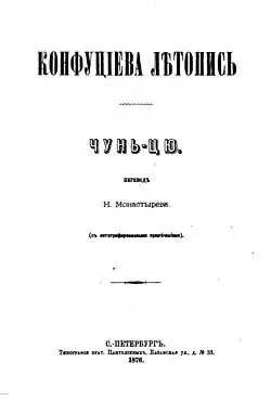 - Конфуциева летопись «Чуньцю» («Вёсны и осени»). Пер. и примеч. Н. И. Монастырева. Исслед. Д. В. Деопика и А. М. Карапетьянца. М.: Издательская фирма «Восточная литература» РАН, 1999. — 351 с., 1 500 экз. (Китайский классический канон в русских переводах). ISBN 5-02-018117-X