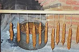 Чурчхела — традиционное грузинское национальное лакомство[1][2], ставшее популярным лакомством многих народов. Готовят её из нанизанных на нитку очищенных орехов в загущённых мукой соках: виноградном, гранатовом или другом.