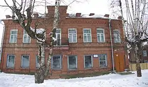 Александровская богадельня для призрения престарелых открыта 30 августа 1889 года. Уездное земство, желая увековечить память Александра II, решило отдать городу двухэтажный полукаменный дом, построенный в последней четверти XIX в. Здание, ставшее главным корпусом богадельни, переоборудовали и ассигновали 5 тысяч рублей на содержание призреваемых. Попечителем был назначен И. И. Июдин. В 1892 г. на средства петербургских купцов Д. Л. Парфенова и И. Н. Боева на втором этаже богадельни устроили домовую церковь. Двухъярусную деревянную звонницу поставили слева от дома по красной линии улицы. В годы Первой мировой войны в богадельне устроили лазарет, а после Октябрьской революции её передали под школу.