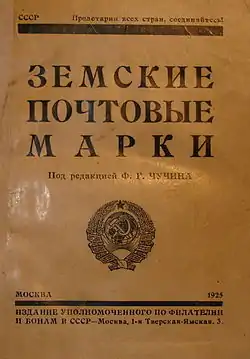 - Каталог земских почтовых марок / Под ред. Ф. Г. Чучина. — М.: Изд-во Уполномоченного по филателии и бонам в СССР, 1925. — 228 с. — Тираж 2000. [Репринтное издание: М., 1991.]