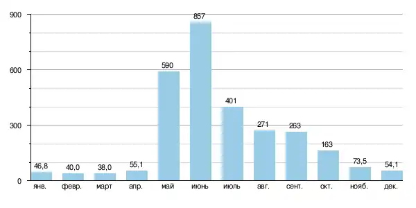 Питание снеговое и дождевое. Среднегодовой расход воды — 206 м³/с.