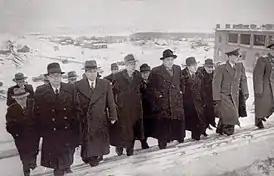 ![]() Чхвё Ён Гон (второй слева) в составе северокорейской правительственной делегации. Москва, март 1949 года | |