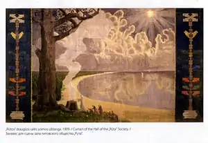 В 1909 году Чюрлёнис с воодушевлением взялся за свою наиболее масштабную работу — занавес для общества «Рута» размером 4×6 м. Он собственноручно загрунтовал холст и расписал его, использовав стремянки. Но этот его труд оказался непонятым, что серьёзно повлияло на психическое состояние автора[3].