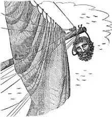 В конце концов «Приключение» повернуло свои орудия на эти два корабля и открыло огонь. Бортовой залп был сокрушительным. В одно мгновение Мэйнард потерял около трети своих сил. Около 20 человек на «Джейн» были либо ранены, либо убиты; та же участь постигла 9 человек на «Рейнджере». Хайд погиб, а его второй и третий офицеры либо погибли, либо были тяжело ранены. Его шлюп был так сильно повреждён, что больше не играл никакой роли в атаке[91]. Свидетельства о том, что произошло дальше, противоречивы, но огонь из стрелкового оружия с «Джейн», возможно, перебил кливер «Приключения», в результате чего корабль потерял управление и налетел на песчаную отмель. После ошеломляющей атаки Тича «Джейн» и «Рейнджер» также могли сесть на мель; сражение превратилось гонку за то, кто первым сможет вытащить свой корабль на воду[92].