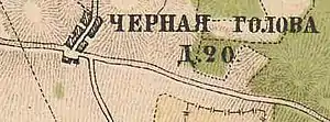 ЧЁРНАЯ ГОЛОВА — деревня владельческая, при колодцах, 7 дворов, 17 м. п., 16 ж. п. (1862 год)[13]