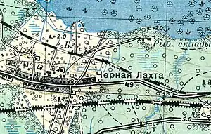 ЧЁРНАЯ ЛАХТА — деревня владельческая при колодцах, на приморском просёлочном тракте, в 40 верстах от Петергофа, число дворов — 15, число жителей: 45 м. п., 45 ж. п. (1862 год)[9]