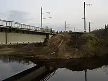 В 2000-х годах мост был заменён. Чтобы не прерывать движение, новый мост был построен сбоку от старого (в стороне от оси пути), поэтому теперь после переезда путь уходит на несколько метров влево. Прямо продолжаются остатки старой насыпи и бывшие опоры контактной сети.