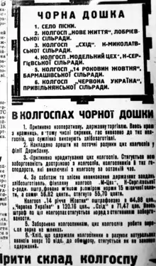 Чёрная доска (укр. Чорна дошка) — административно-репрессивное средство коллективного наказания сельского населения, в частности на Украине. Режим «Чёрных досок» стал одной из причин голода — занесение по решению ЦК КПУ[1] целых районов, населённых пунктов, колхозов, сельских советов на так называемые " чёрные доски " означало блокирование их спецподразделениями и военными, недопущение выезда населения за границы этих территорий, изъятие всех продуктов питания, запрет торговли.