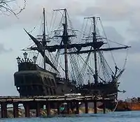 «Чёрная Жемчужина» (англ. The Black Pearl) — вымышленный галеон из серии фильмов «Пираты Карибского моря». «Чёрная Жемчужина» легко узнаваема по своим чёрным парусам. Корабль носил название «Распутная Девка» (англ. Wicked Wench) до того, как был потоплен лордом Беккетом. Позже корабль был поднят со дна Дейви Джонсом после заключения договора с капитаном Джеком Воробьем, который дал кораблю новое название. В первом фильме она называется «почти неуловимой». На протяжении трёх фильмов она легко догоняет и уходит от любых кораблей, в том числе от британского судна «Перехватчик» и «Летучего Голландца» (идущего быстрее, чем ветер). Её скорость поддерживается большим количеством парусов. В третьем фильме корабль отмечается, как «единственный корабль, которому „Летучий Голландец“ уступает в быстроходности».