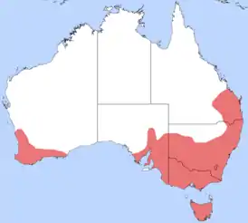 Австралия; Тасмания (в Хобарте был собран голотип, первый типовой экземпляр этого вида); Западная Австралия (Albany, Mundaring, Denmark); Южная Австралия (Mt. Lofty, Normanville, Aldgate, Kangaroo Island); Новый Южный Уэльс (по всей территории штата); Квинсленд (Bunya Mt., Fletcher, Stanthorpe, Mt. Tambourine, Millmerran)[9].