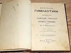 - Шильдбах К. Г. Детская гимнастика : Руководство для родителей, учителей и дет. садовниц / К. Г. Шильдбах; Пер. с нем. А. Н. Шабановой, ассист. Дет. клиники при Жен. врач. курсах Под ред. д-ра мед. А. Руссова, преп. дет. болезней на Жен. врач. курсах. - 2-е рус. изд.. — СПб.: К. Риккер, 1887. — 100 с.