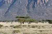Национальный заповедник Шаба, основанный в 1974 году, расположен в северной части Кении, к востоку от национальных заповедников Самбуру и Баффало Спрингс. Вместе, эти три заповедника составляют большую защищенную территорию.[2] Заповедник имеет живописную местность, включающую в себя прибрежные леса, разбросанные участки леса и сухие луга, над которыми возвышается гора Shaba Hill. Разнообразие дикой природы зависит от водоёмов и болот, разбросанных по всей территории заповедника. Шаба является местом обитания исчезающей зебры Греви и редкого жаворонка Уильмса (Williams's Lark).