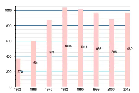 | 1962 | 1968 | 1975 | 1982 | 1990 | 1999 | 2006 | 2011 | 2012 |