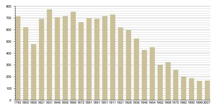 | 1793 | 1800 | 1806 | 1821 | 1831 | 1836 | 1841 | 1846 | 1851 | 1856 | 1861 | 1866 | 1872 | 1876 | 1881 | 1886 | 1891 |