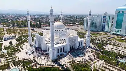 C 2012 года на площади в 5 гектар в центре города, рядом с высотным комплексом «Шали-сити», активно велось строительство новой мечети, над уникальным проектом которой, не имеющего аналогов в мире, работали архитекторы из Узбекистана. Торжественное открытие мечети, приуроченное ко дню рождения первого президента республики — Ахмата-Хаджи Кадырова, состоялось 23 августа 2019 года. Новая мечеть «Гордость мусульман», ставшая самой большой в Европе, может вместить до 30 тысяч человек, а прилегающая территория — до 70 тысяч. Здание, имеющее купол высотой 43 метра и минареты высотой 63 метра, покрыто белоснежным мрамором с греческого острова Тасос, который ценится тем, что отражает свет и дарит прохладу в жару. Восьмиметровая центральная люстра весом более двух с половиной тонн и 395 светильников украшены камнями Swarovski и золотом. На площади 5 гектаров устроена парковая зона с 12 фонтанами. Здесь высажено около 2000 деревьев и настоящая долина роз. Изначально планировалось, что мечети дадут имя главы республики Рамзана Кадырова. На церемонии открытия было объявлено о названии мечети именем пророка Мухаммада.